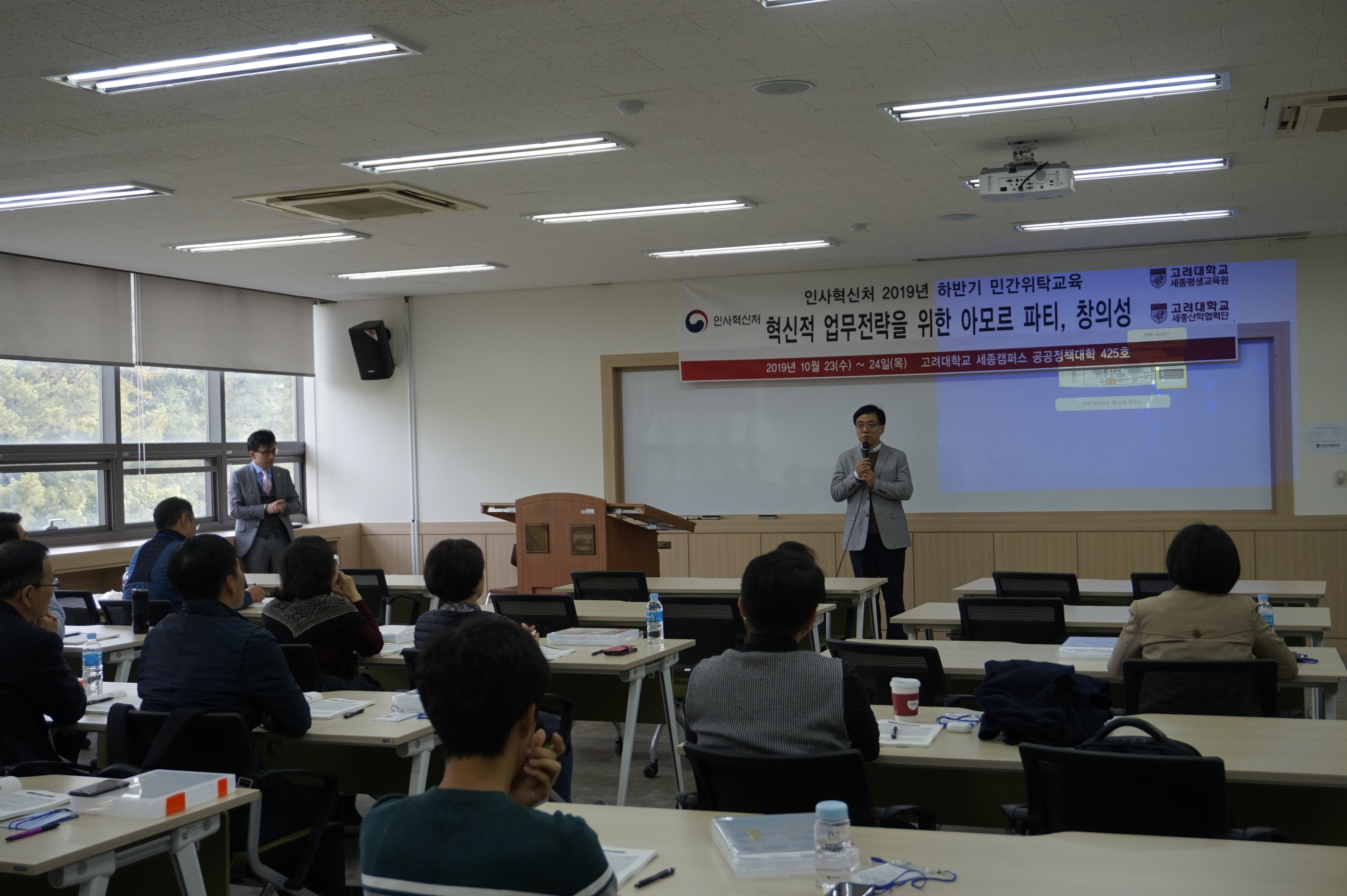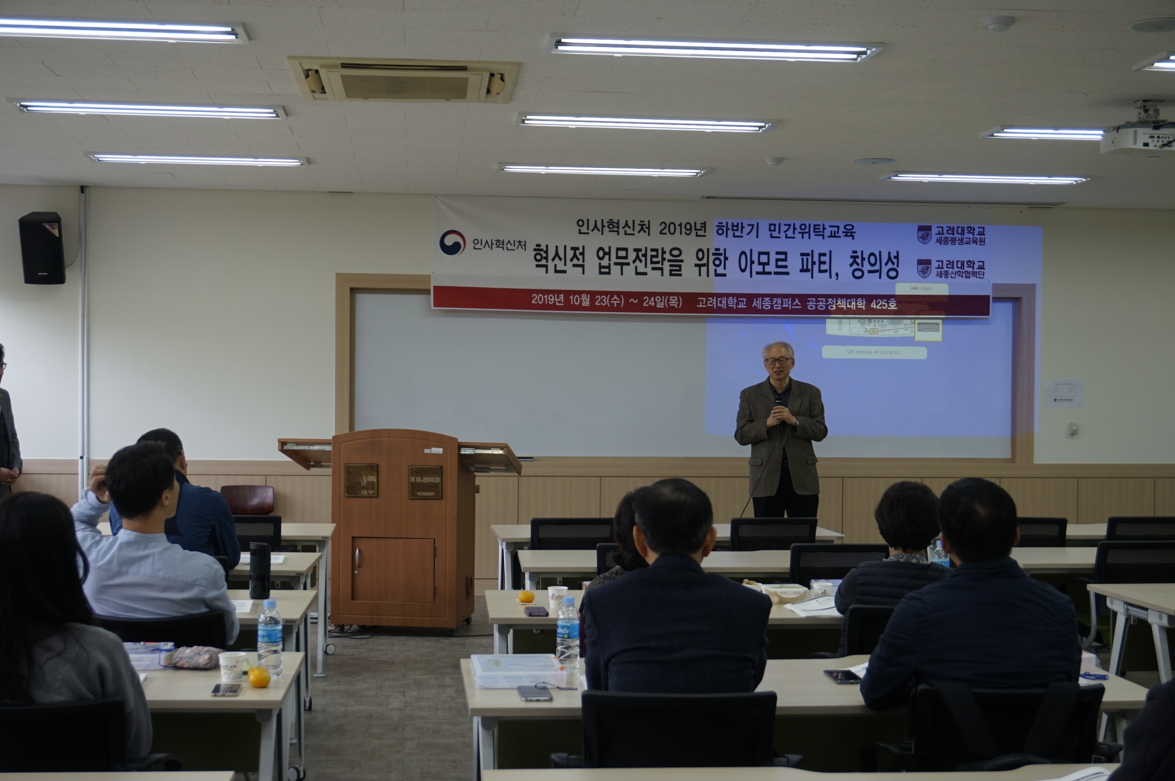 인사혁신처 민간위탁교육은 중앙정부 공무원을 대상으로 21세기 글로벌 시대를 맞이해 창의적 혁신에 대한 이해를 높이고자 기획되었다. ‘아모르 파티, 창의성!’ 교육은 전승환 산학협력단 연구교수가 책임교수로, 고려대학교 글로벌비즈니스대학 교수진과 함께 문화 및 사회적 이론을 사례 중심으로 이해하기 쉽게 강의한다.